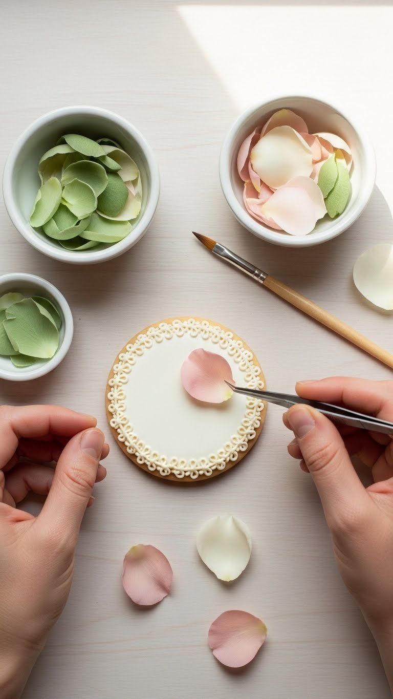 - Keep designs minimal: 1–3 petals per cookie looks elegant and reduces moisture issues.