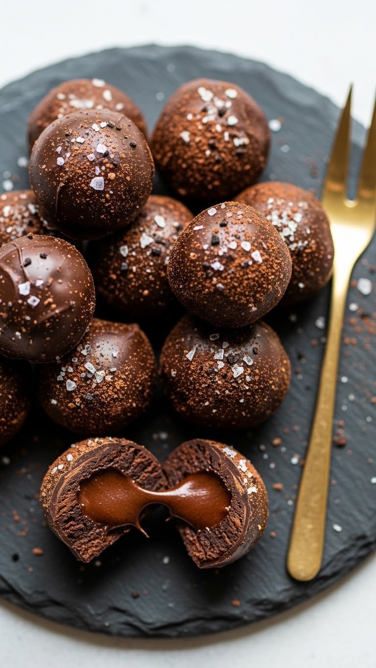 - Roll truffles in cocoa powder, or chopped pecans for texture. Sprinkle a tiny pinch of smoked sea salt on top.