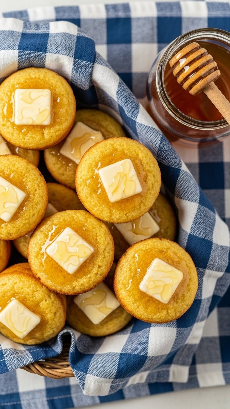 Serve in a lined basket with extra honey butter packets. Pair with pulled pork, baked beans, and coleslaw. Make muffins a few hours ahead and rewarm briefly in oven. Freeze extra muffins for up to 2 months; reheat gently.