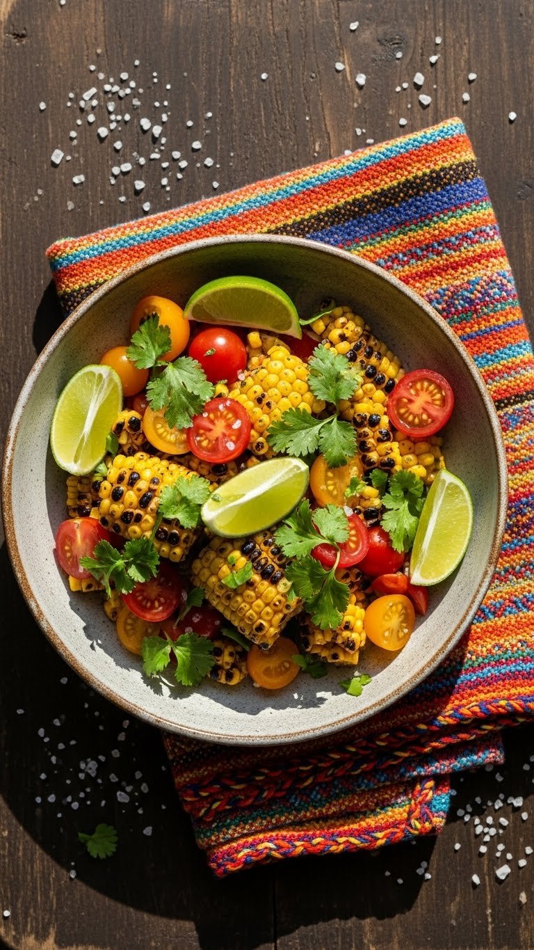 This salad mixes sweet grilled corn with juicy tomatoes. The lime vinaigrette adds brightness and a little heat from chili flakes. It’s fresh, slightly smoky, and crunchy.