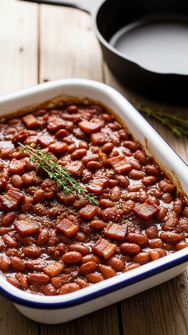 These baked beans are rich, smoky, and slightly sweet. Bacon and smoked paprika give deep flavor. They’re hearty and pair with every grilled main.