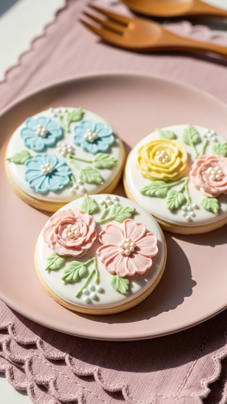 Serve on a white platter with fresh baby’s breath or small peonies. Garnish with edible gold pearls or sprinkles for a subtle sparkle. Pair with chamomile tea or iced lemon tea. Store in an airtight container at room temperature for 3 days. Make ahead: bake cookies and freeze undecorated for up to 1 month; thaw before icing.