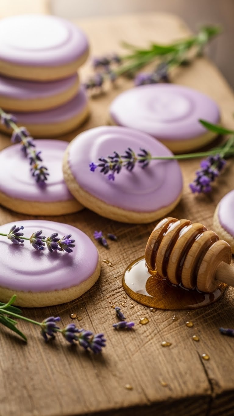 - Glaze with a thin honey glaze or lavender-tinted royal icing. Garnish with a tiny lavender bud.