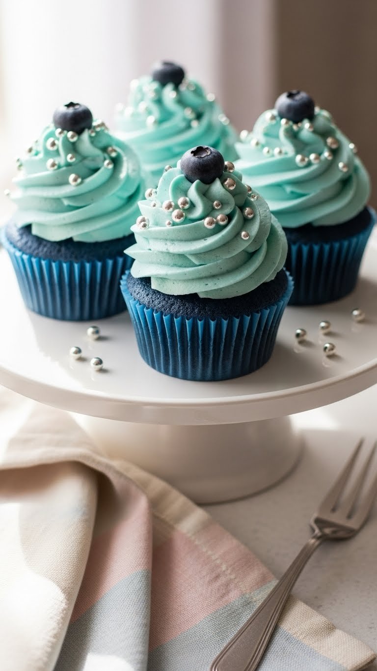 Serve on a white cake stand for contrast. Garnish with extra blueberries and a light dusting of powdered sugar. Pair with sparkling lemonade or chamomile tea. Keep cupcakes refrigerated if not serving within two hours. Make frosting a day ahead and assemble the morning of the shower. Perfect for spring or pastel-themed baby shower desserts.