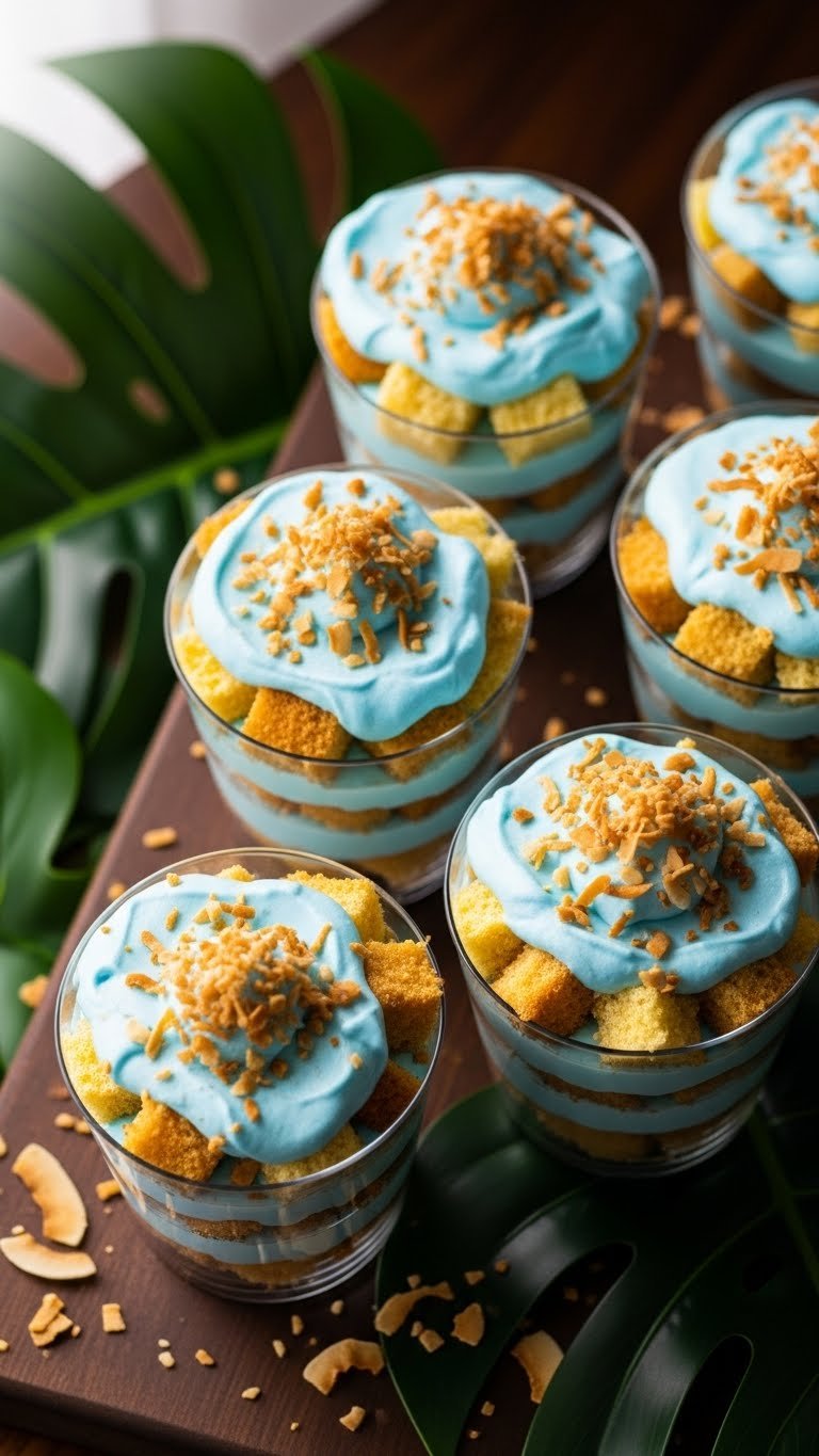 These blueberry yogurt parfait shooters are fresh and light. Creamy yogurt pairs with tart blueberries and crunchy granola. They make a refreshing option among richer Blue Baby Shower Treats. You’ll enjoy contrasting textures and bright berry flavor in every spoonful.