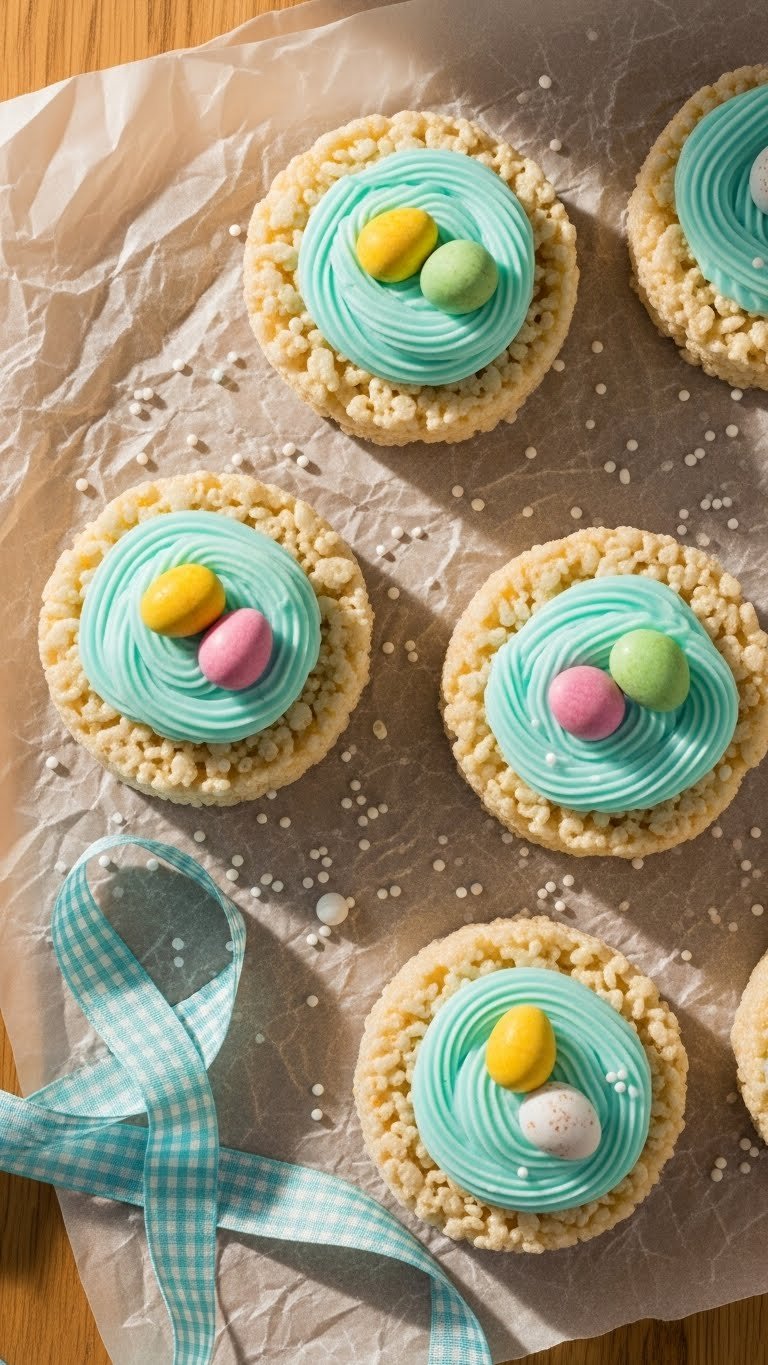 Arrange nests on a wicker tray for a rustic look. Add edible grass or pastel confetti around them. Pair with milk or iced coffee. Make a day ahead and store in a cool, dry place. For gluten-free option, use gluten-free cereal.