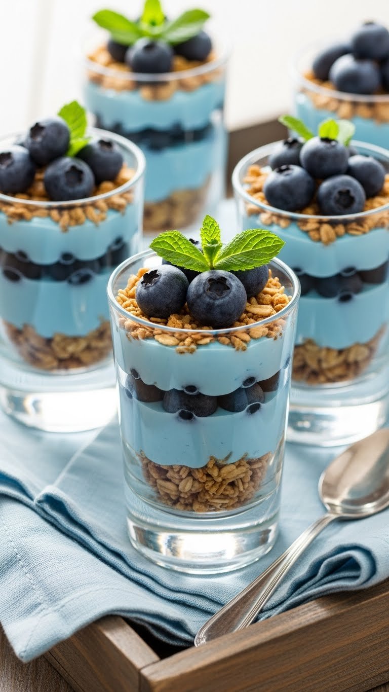 Serve shooters chilled on a mirrored tray for reflections. Add small spoons or mini wooden spoons. Pair with herbal tea or a mimosa bar for adults. Make parfaits no more than a day ahead to keep granola crunchy. For dairy-free, use coconut yogurt and dairy-free granola.