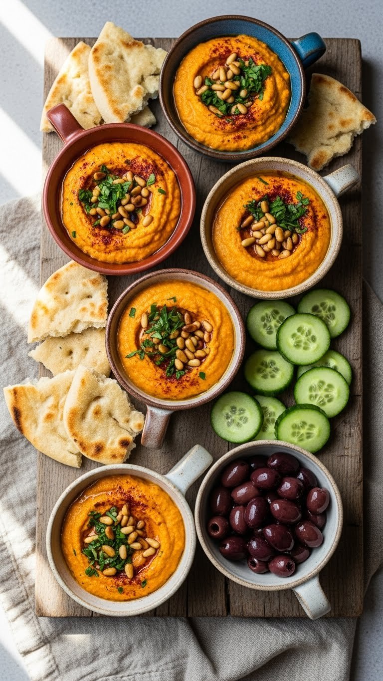 This hummus blends roasted carrots with warm Moroccan spices for vibrant color. The texture is silky and slightly chunky from toasted pine nuts. It’s a colorful, vegetarian-friendly option for a boho baby shower menu. Guests who like bold, spiced flavors will reach for these cups first. You’ll notice warm cinnamon and cumin aromas.
