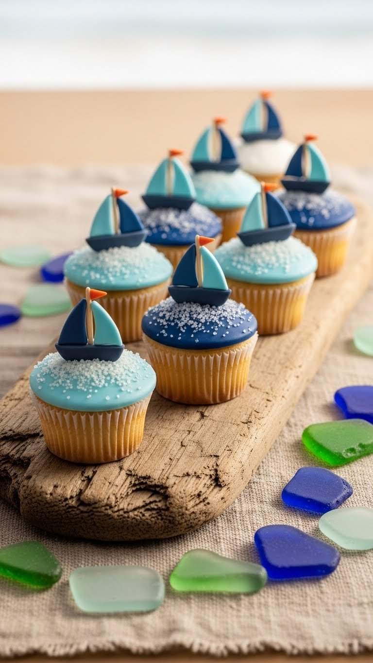 You’ll find classic vanilla blue swirl cupcakes, a zesty blueberry-lemon version, a rich chocolate-ganache treat, plus themed toppers like sailboats, stars, and tiny fondant booties. Every recipe lists exact measurements, bake times, cooling tips, and simple serving ideas to help you pull off a polished spread.