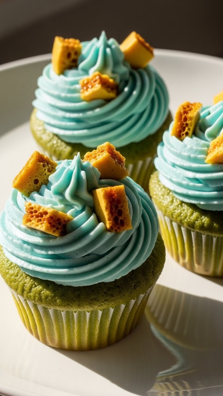 These matcha honey baby boy cupcakes combine earthy green tea with floral honey. The crumb is delicate with a subtle herbaceous note. Pale blue buttercream keeps the baby-boy palette. If you want a refined, less-sweet option, these are for you.