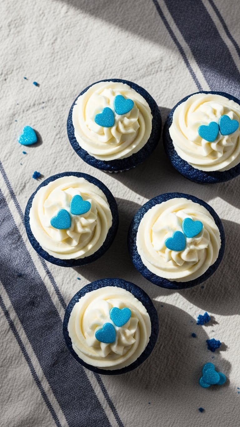 Blue velvet baby boy cupcakes are a colorful twist on a classic. The cake is moist with a hint of cocoa and a soft blue hue. Cream cheese frosting adds tang and creaminess. They’re ideal when you want rich flavor with a baby-blue pop. You’ll notice a pleasing balance between sweet and tangy.