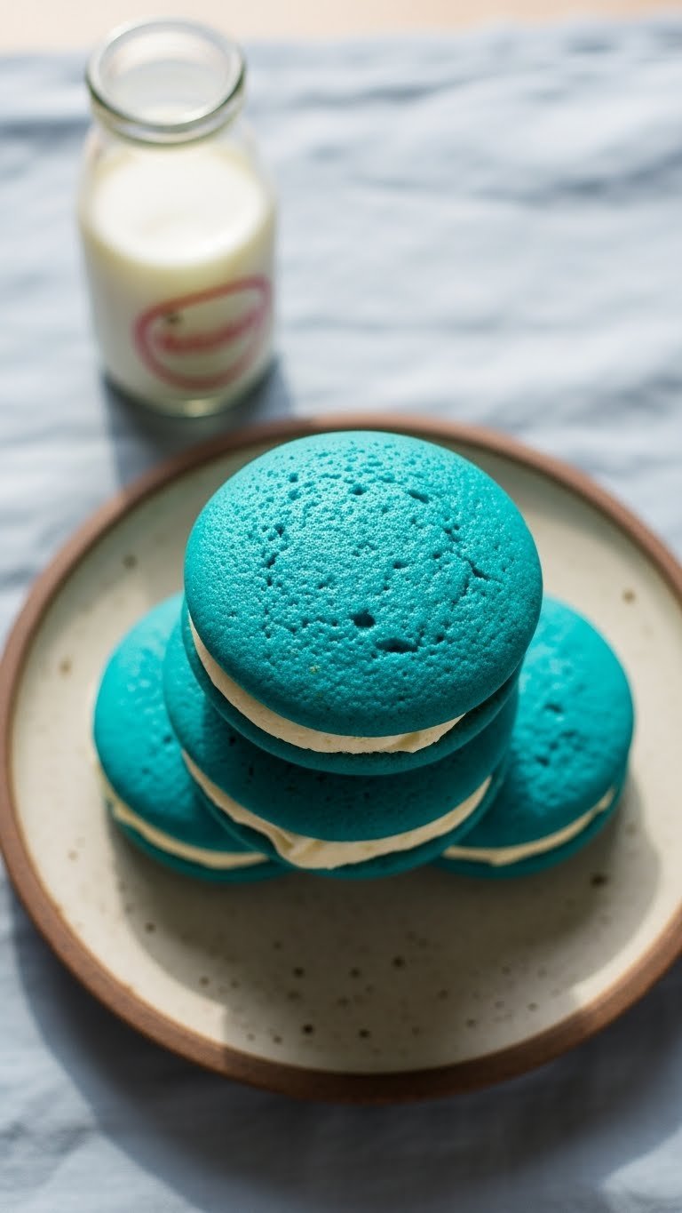 Whoopie pies are pillowy blue cake sandwiches filled with sweet cream. They’re nostalgic and portable, ideal for a baby boy dessert table where guests want handheld treats.