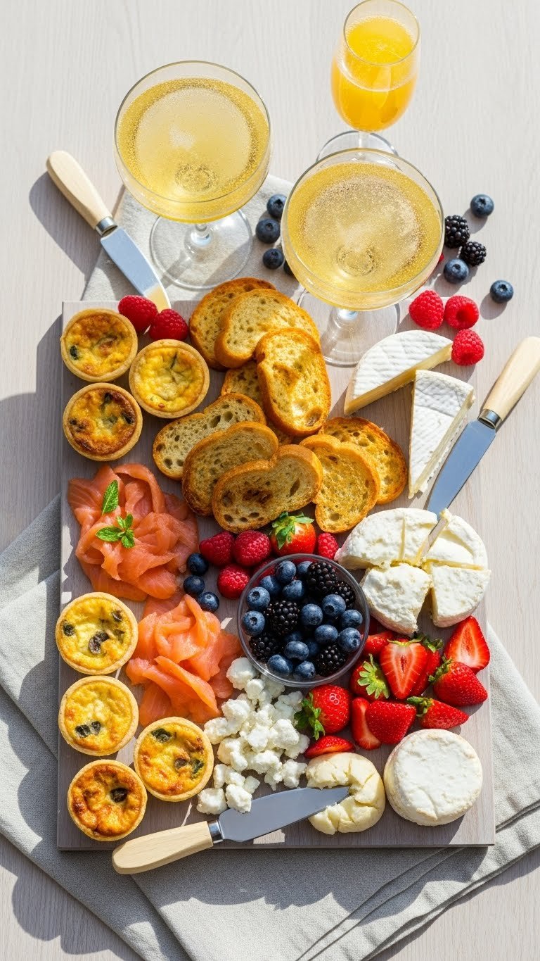 - Bring board to the table and place mimosas or champagne nearby for easy pouring.