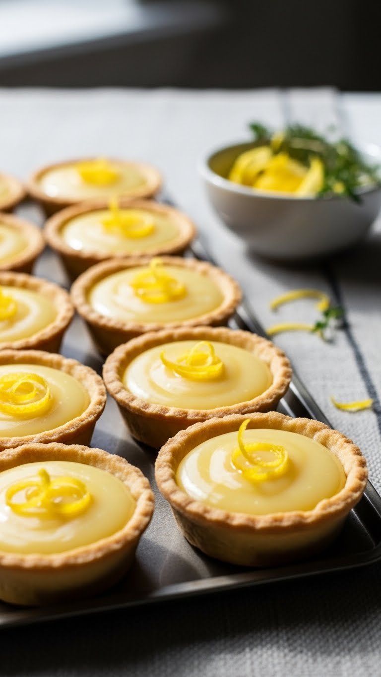 - Pour curd into shells. Bake 10–12 minutes until centers set but slightly wobbly.