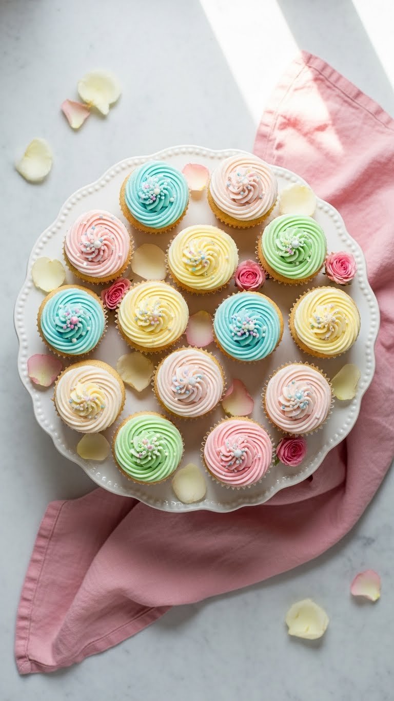 Arrange on a tiered stand with matching liners for a cohesive look. Add edible flowers or gold sugar pearls for bridal charm. Pair with coffee or champagne. Make cupcakes a day ahead and frost the morning of the event for freshness.