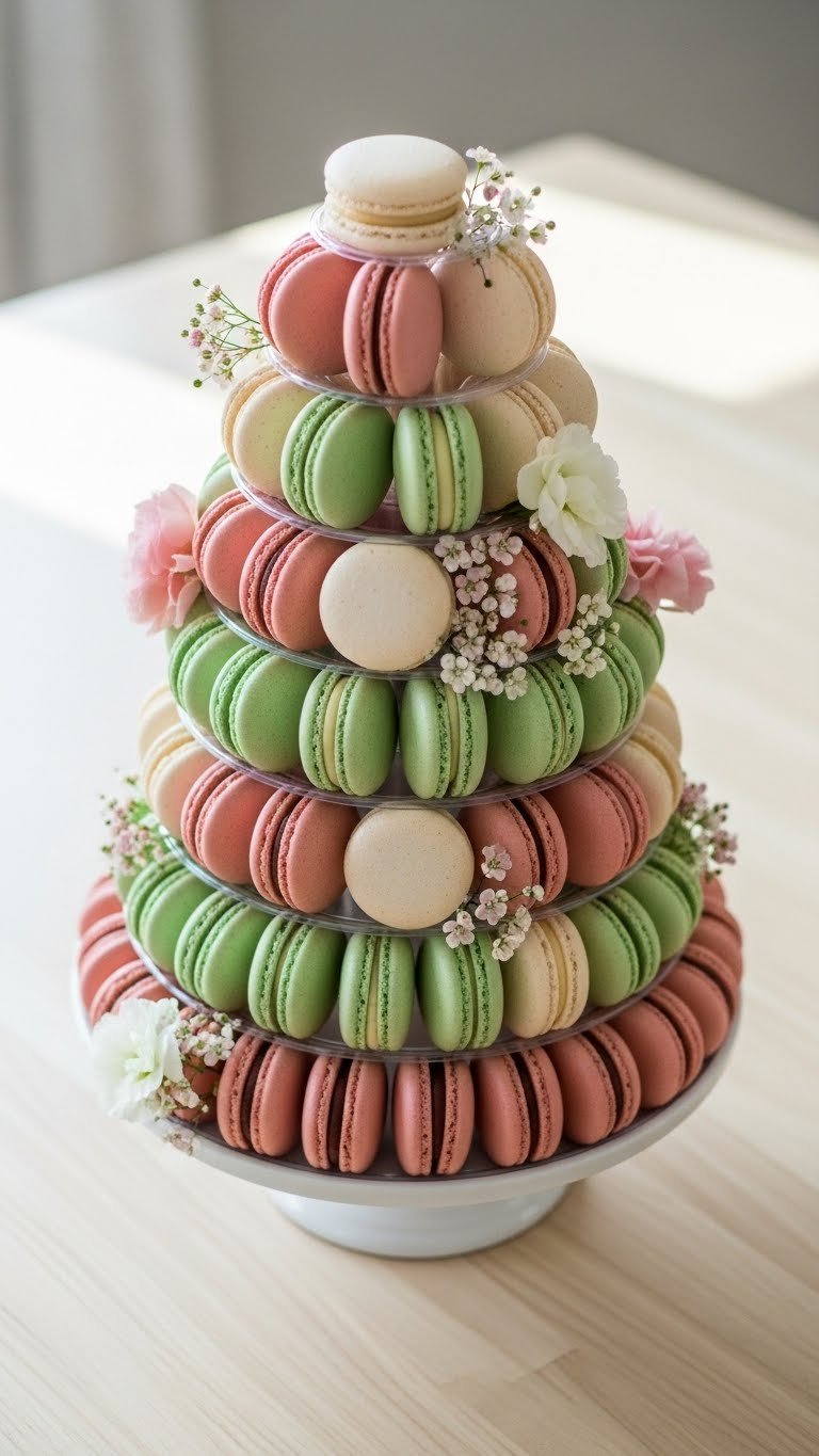 Stack on cake stands or lay flat with parchment. Add sprigs of fresh herbs or small blossoms for scale. Pair with tea or coffee. Store in an airtight container up to 5 days. Decorate a day ahead and store in a cool, dry place.