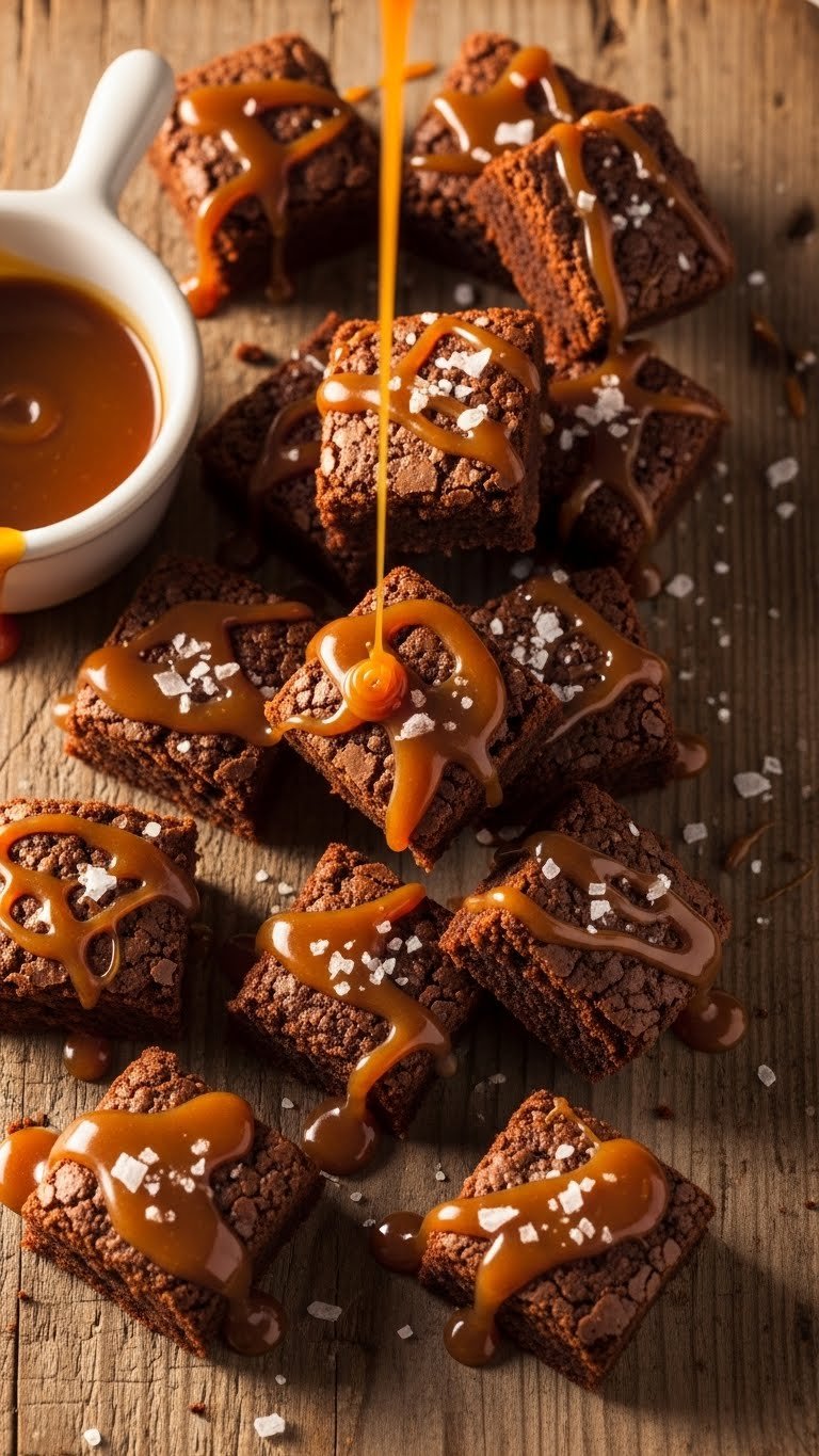 Serve on slate plates with small forks. Add extra caramel for dipping. Pair with bold coffee or tawny port. Store in an airtight container at room temp up to 3 days. Brownies freeze well; thaw before serving.