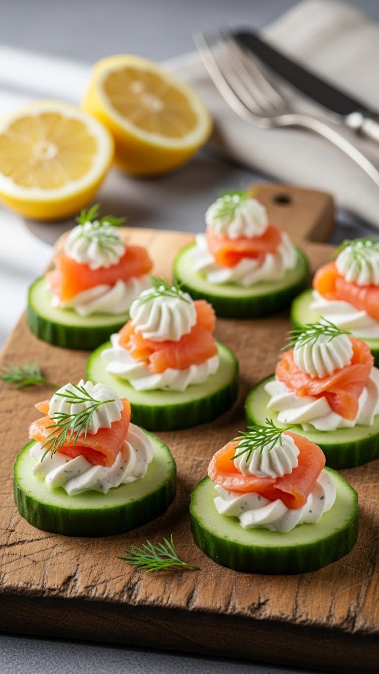 These Smoked Salmon Cucumber Bites feel luxe without fuss. Cool cucumber rounds hold tangy dill cream cheese and silky smoked salmon. Each bite balances crunch, creaminess, and delicate smoke.