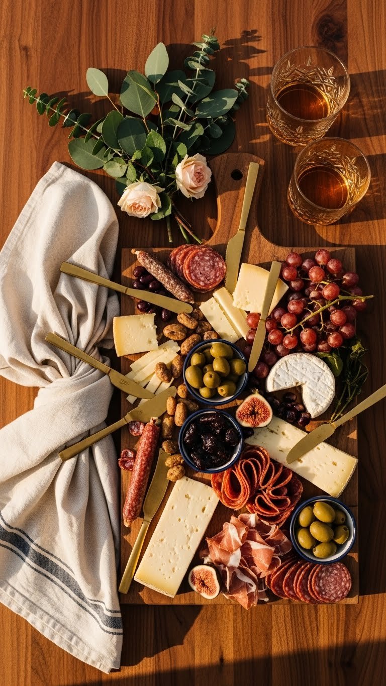 Tip: Buy slightly more charcuterie than you think — guests graze. Keep cheeses cool until 20–30 minutes before serving.
