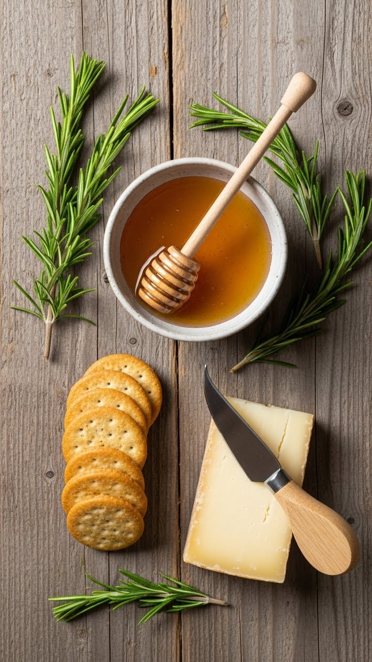 - Condiments: honey, grainy mustard, chutney in small bowls.