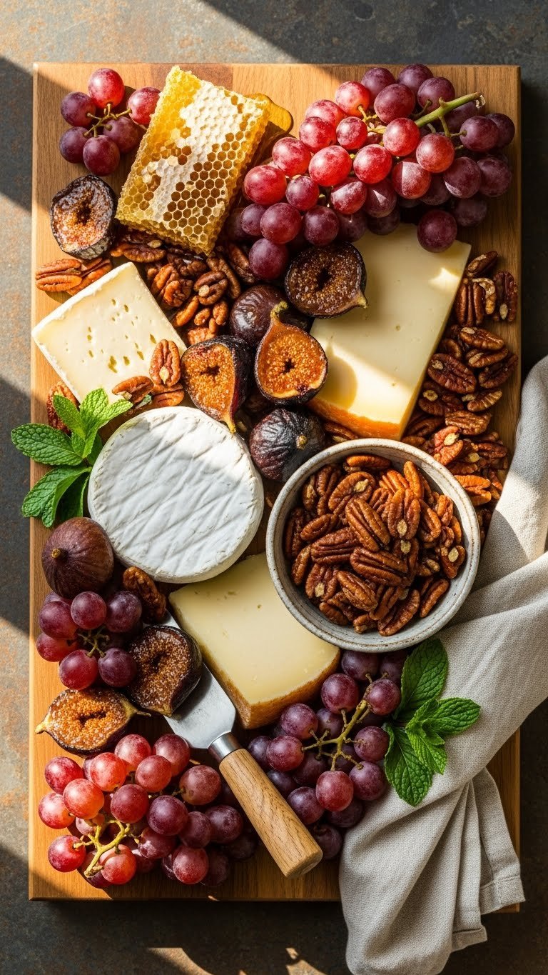 You’ll taste caramelized figs, a boozy finish, and silky cheese. This board suits whiskey lovers and guests who prefer deeper flavors. Expect a warm, toasty aroma with sweet undertones.