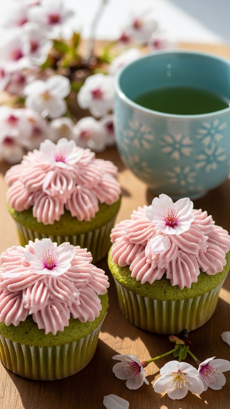 Serve with green tea on a lacquer tray for an elegant touch. Garnish with fresh cherry blossoms if available. Store in fridge up to 3 days. Make matcha cupcake batter the night before for easy morning baking.