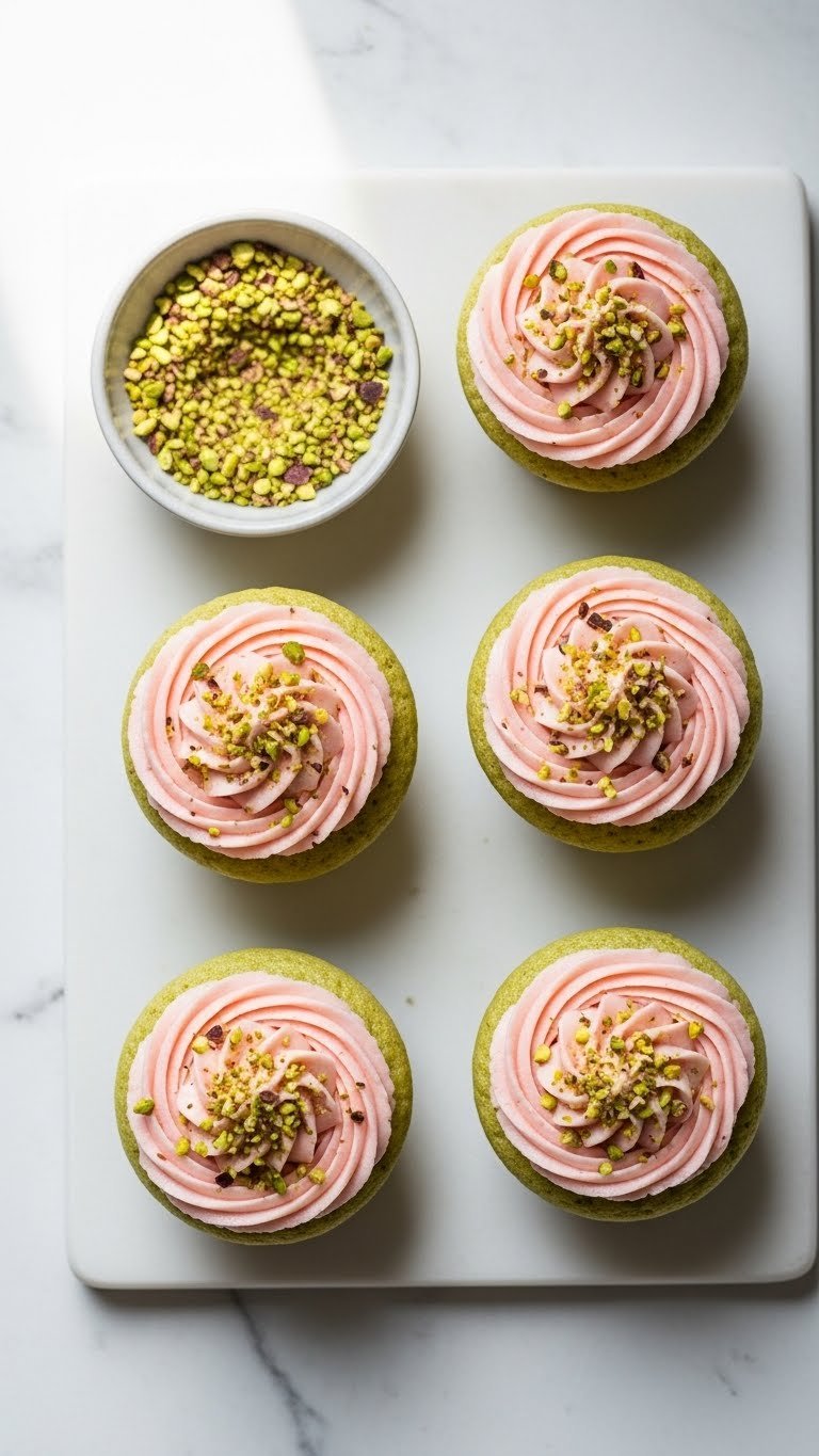 Pistachio and rosewater make a subtle, floral-nutty cupcake. The cake is moist and slightly green from ground pistachios. Rosewater buttercream adds heady floral notes without overpowering. These cupcakes feel refined and pair well with coffee.