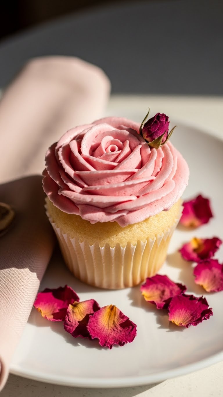 Serve on a white or blush tiered stand for bridal tables. Garnish with tiny rosebuds and a dusting of edible pearl dust for shimmer. Pair with champagne or light tea for a soft, elegant pairing. Store in an airtight container in the fridge up to 3 days; bring to room temperature before serving. Make ahead: bake the day before and pipe buttercream the morning of.