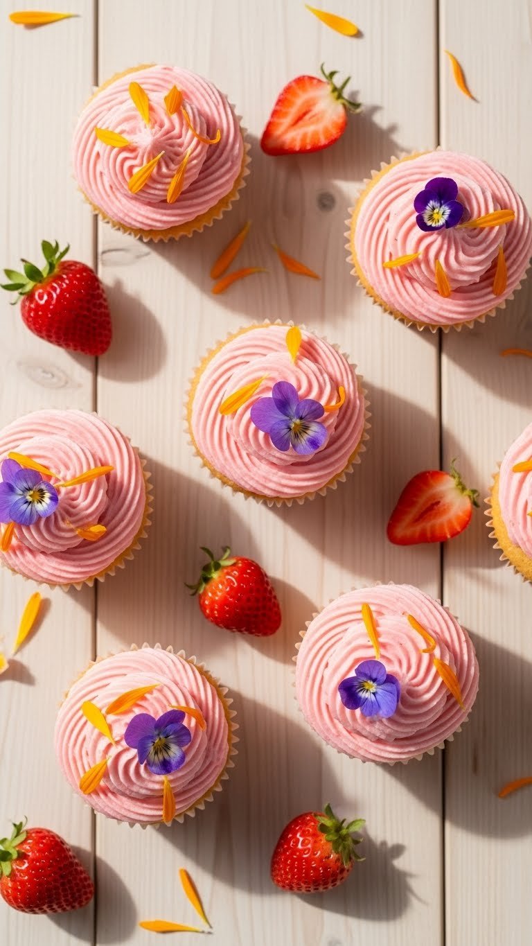 4. Strawberry Chantilly Cupcakes with Edible Flower Confetti