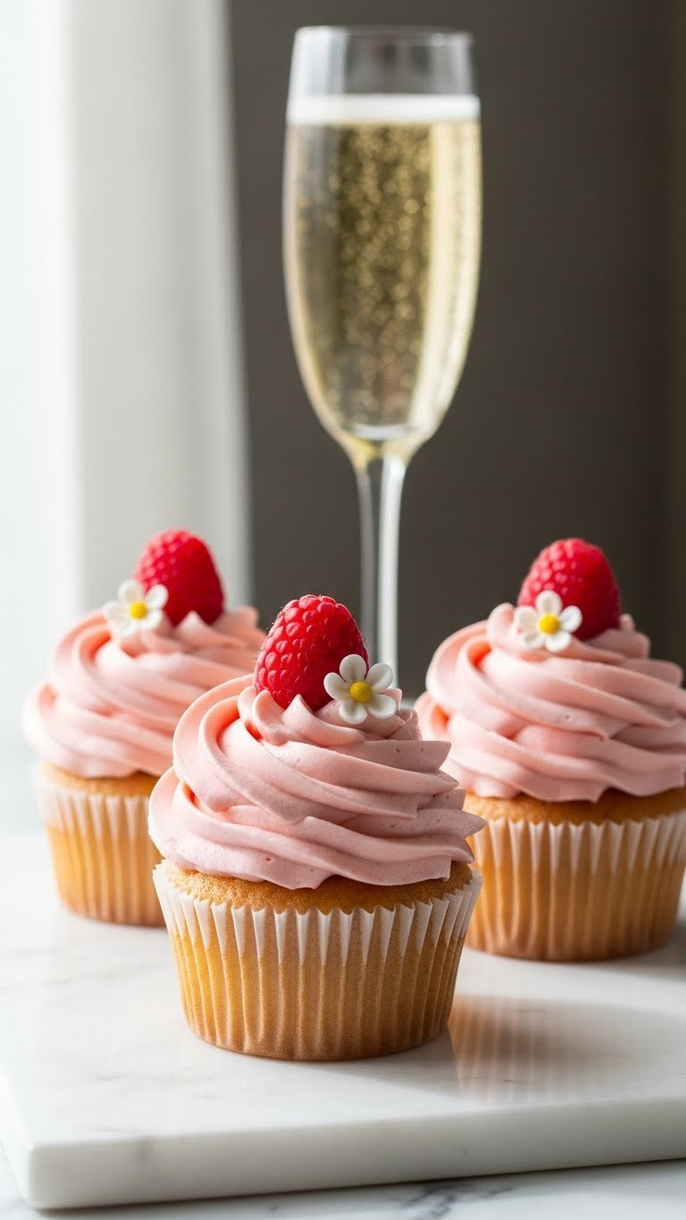 5. Floral Topped Bridal Cupcakes That Look Magical — Champagne Raspberry Cupcakes