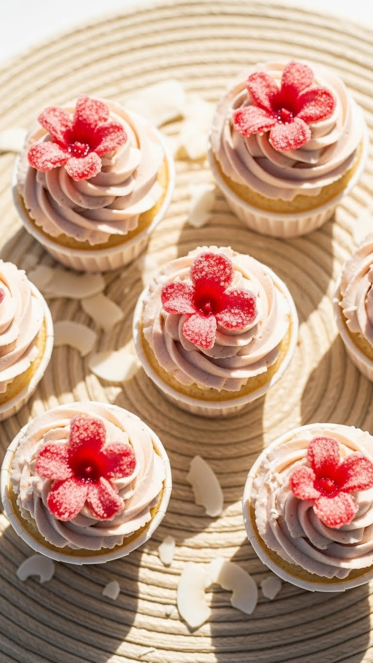 Coconut lime cupcakes are bright and tropical. Lime zest and juice give fresh citrus lift while coconut adds chew and warmth. A light buttercream topped with orchid petals looks elegant.