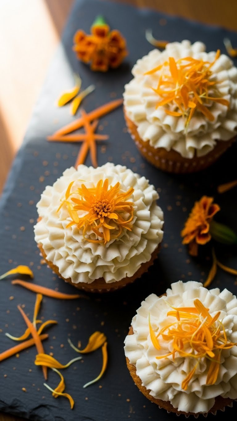 12. Carrot Cake Cupcakes with Marigold Petal Buttercream