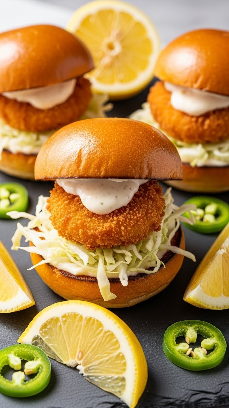 These shrimp sliders pack a spicy, crunchy punch. Coated in panko and fried until golden, the shrimp contrast with cool lemon aioli. They’re great for handheld eating at a lively backyard party. Fans of heat and crunch will love them. Expect bright citrus and a satisfying crunch.