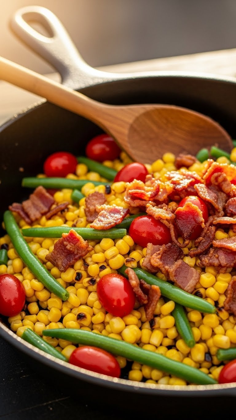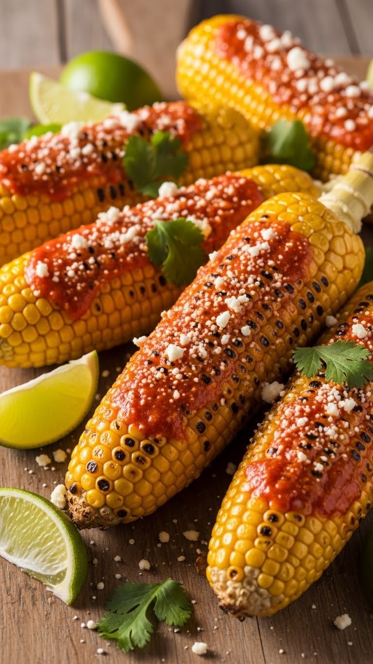 Charred corn gets a spicy, citrusy boost with chili lime butter. The butter melts into the kernels, creating glossy heat with a tang. This side is rustic and perfect for summer grills. You’ll love the smoky char and zesty finish. Expect buttery, spicy, and bright bites.