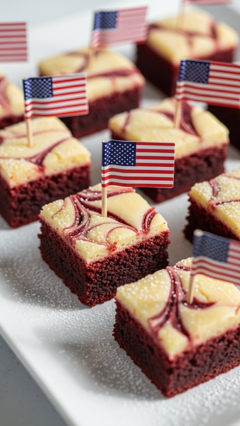 12. Patriotic Fourth of July Party Spread Ideas That Shine — Red Velvet Brownie Bites with Cream Cheese Swirl