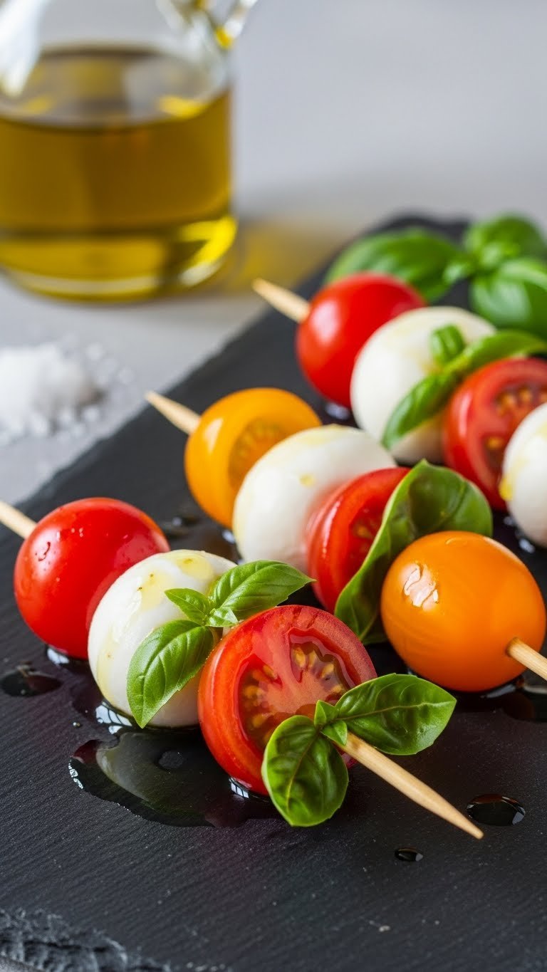 3. Heirloom Tomato & Burrata Caprese Skewers (Seasonal Tomato Bites)