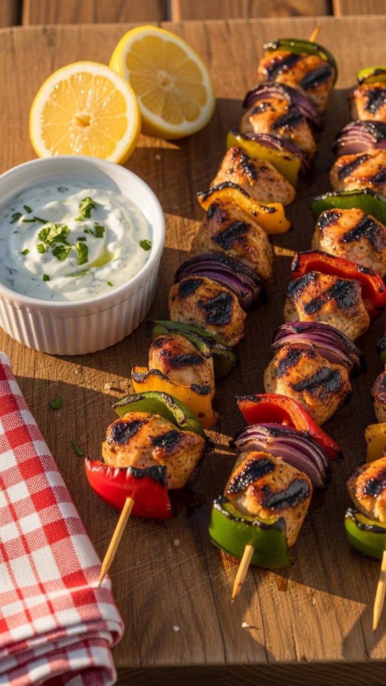 4. Grilled Lemon-Garlic Chicken Skewers with Herb Yogurt Dip