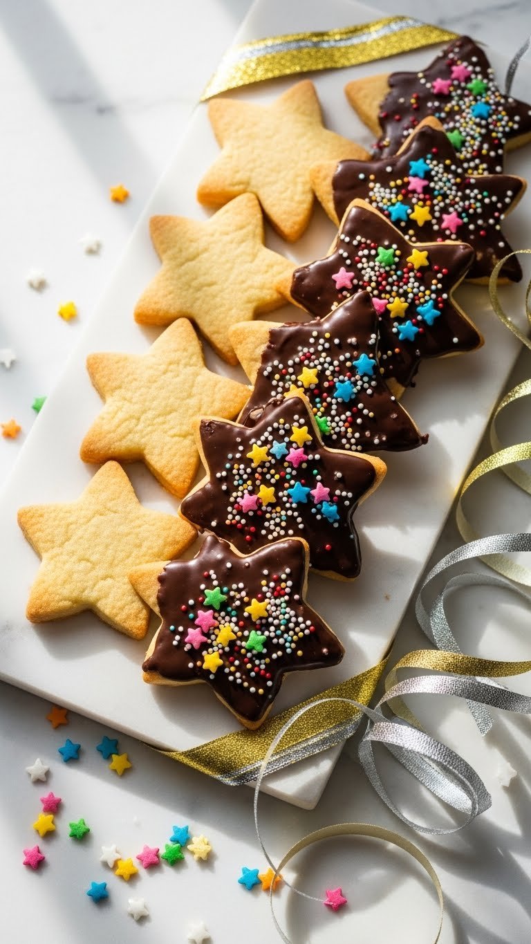 Arrange on tiered trays or cookie platters with coordinating ribbon. Use school-color sprinkles for a themed look. Pair with coffee or milk. Store in an airtight container at room temperature for 5 days, or freeze for 3 months. You can bake the plain shortbread a day ahead and dip on the party morning.