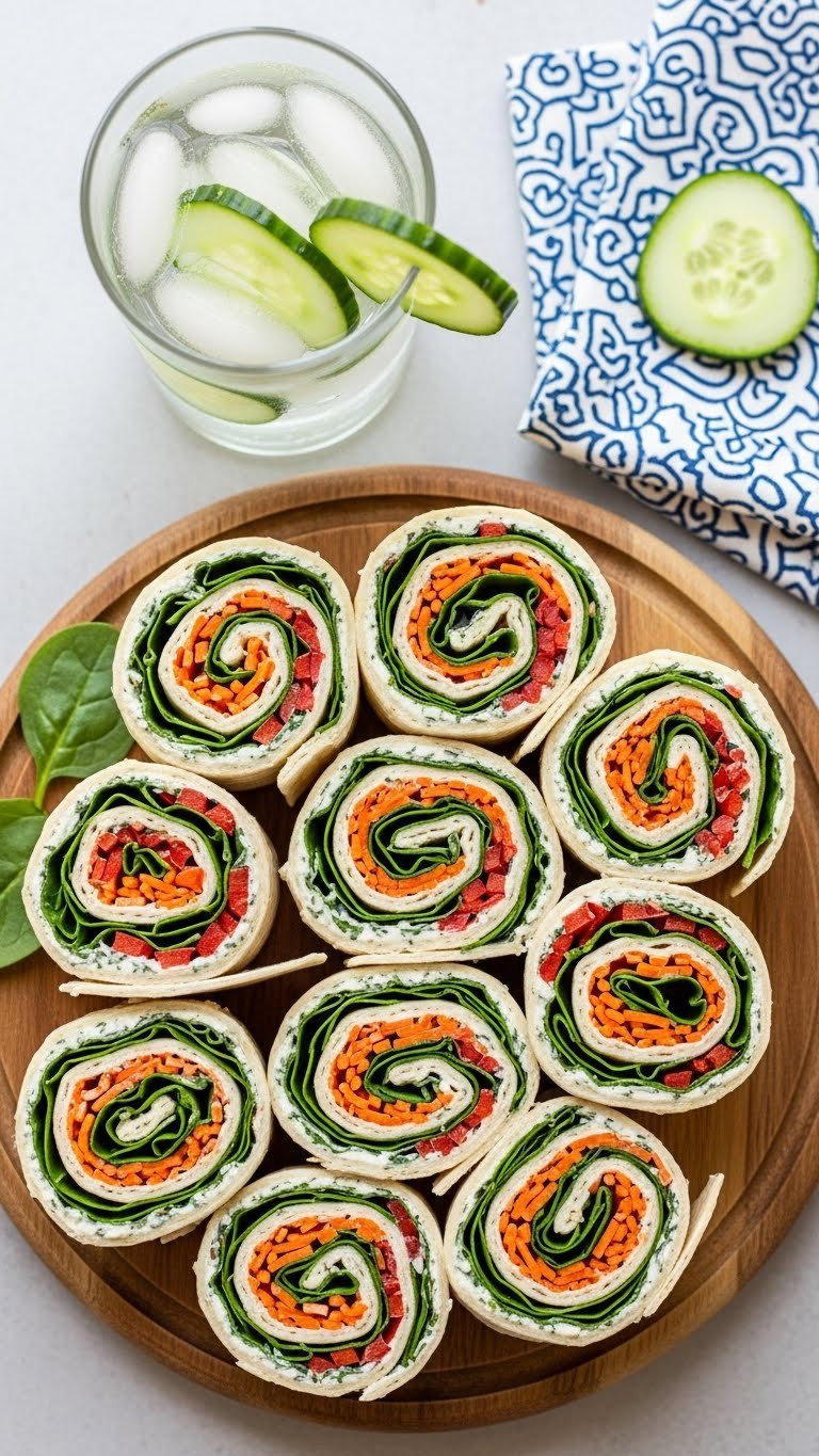 10. Rainbow Veggie Pinwheels with Herbed Cream Cheese