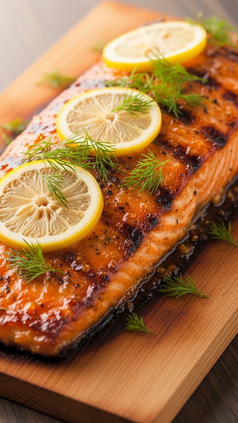 - Set plank on grill and cook 12–18 minutes with lid closed until salmon reaches 125–130°F for medium; brush with remaining glaze halfway through.