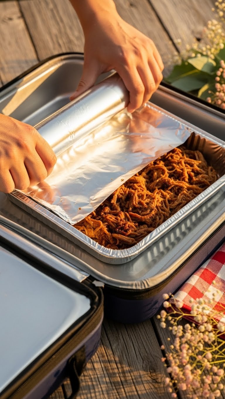 - For meat: tent with foil, then wrap in clean towels before placing in insulated carriers for transport or temporary holding.