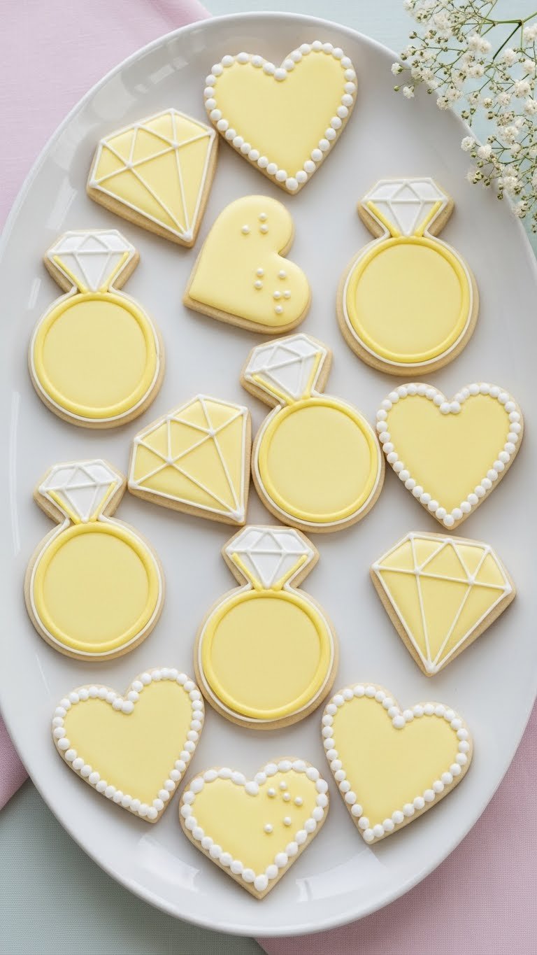 Stack cookies on a cake stand or package in clear boxes tied with ribbon for favors. Add small pearl sprinkles or hand-piped initials for personalization. Pair with sweet tea or a blush rosé. Bake cookies 1–2 days ahead, decorate the day before, and let icing fully set. These are lovely for a vintage or pastel wedding shower theme.