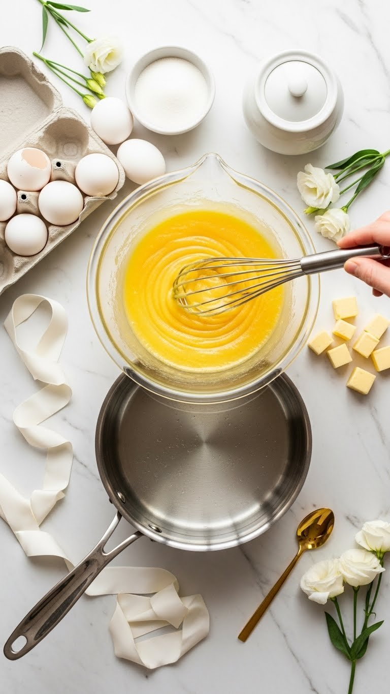 Tip: use room-temperature eggs and butter for lighter batter. If curd splits, whisk in 1 tbsp cold butter off heat.