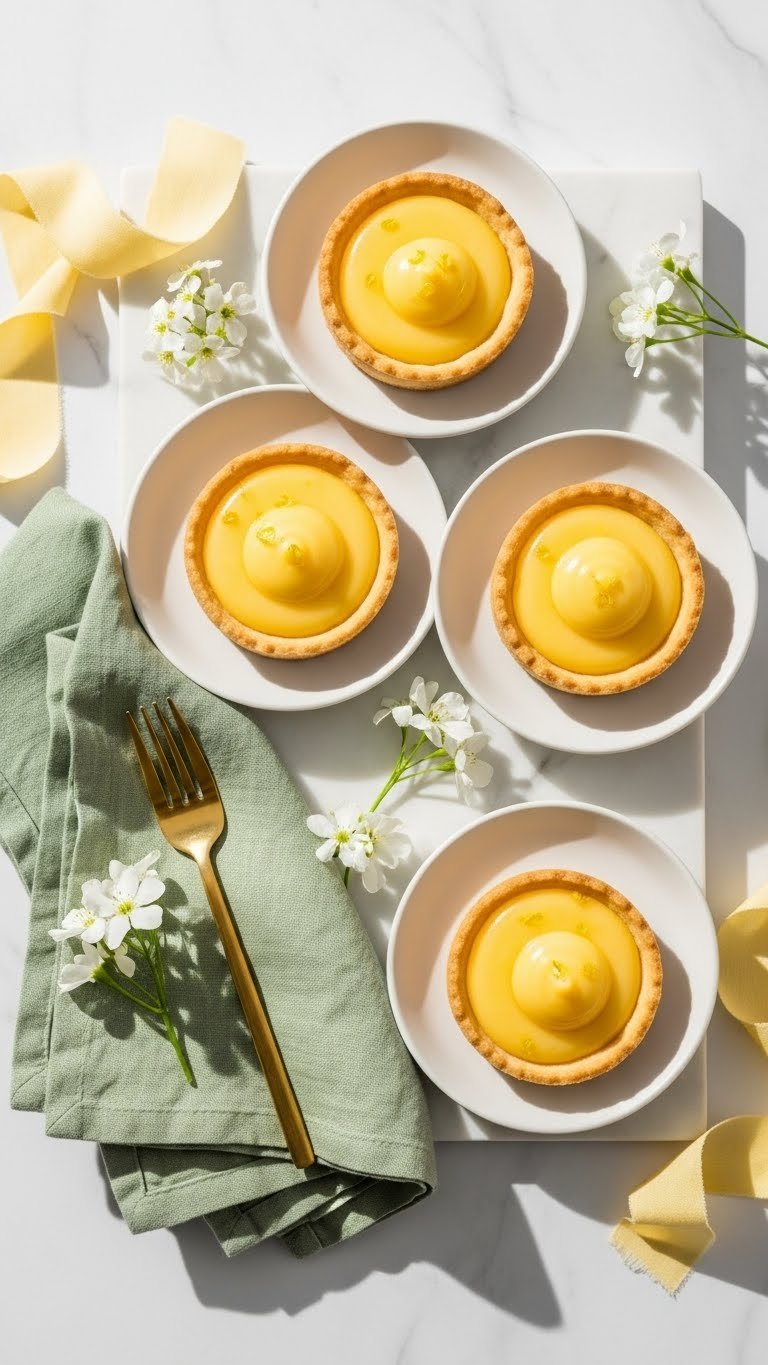 - For tarts: pipe a thin ring of whipped cream, spoon chilled curd, and top with candied lemon slice and tiny mint leaf.
