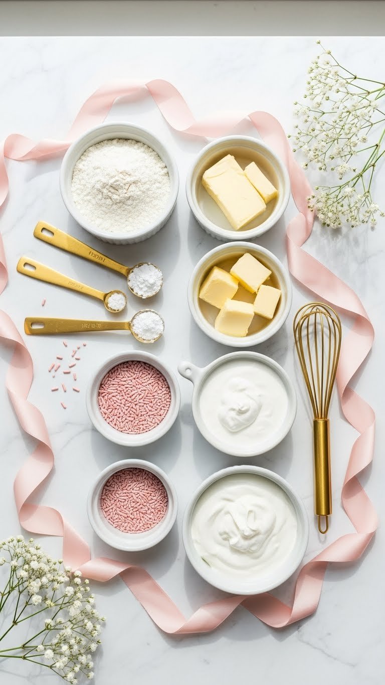 - Fillings/toppings: fresh berries, lemon curd (1 cup), chocolate ganache (8 oz heavy cream + 8 oz chocolate), sprinkles.