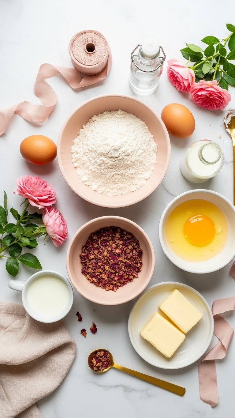 - Buttercream recipe: 1/2 cup (115g) butter, 2 cups (240g) powdered sugar, 1–2 tbsp milk, 1/2 tsp vanilla, and 1/2 tsp rose water.