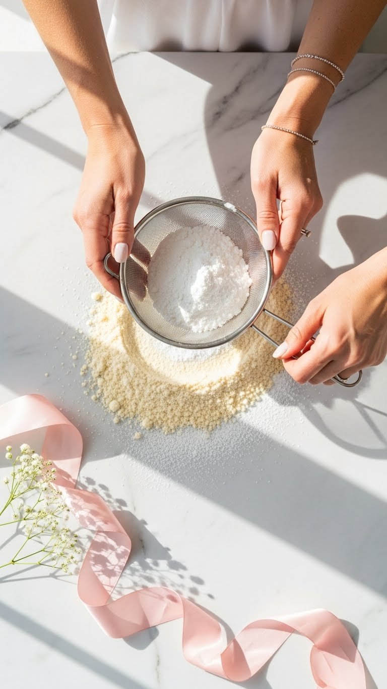 - Sift almond flour and powdered sugar together twice to remove lumps.