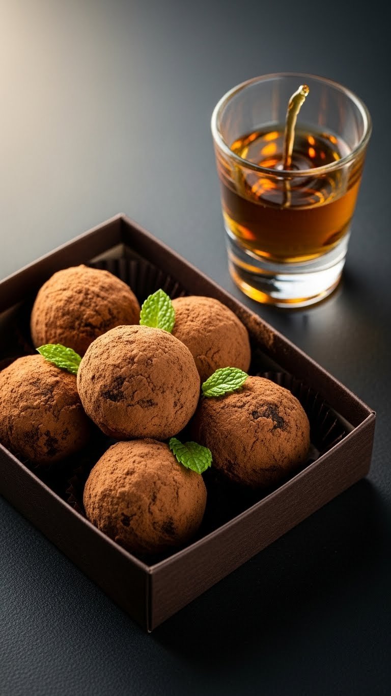 Rich chocolate truffles get a mint-bourbon twist for a small, indulgent snack. They're silky inside with a boozy, mint-scented bite. These fit Mint Julep Party Snacks by offering a sweet, mint-forward finish. Chocolate lovers and adults will savor them. Expect a velvety texture and deep chocolate aroma.