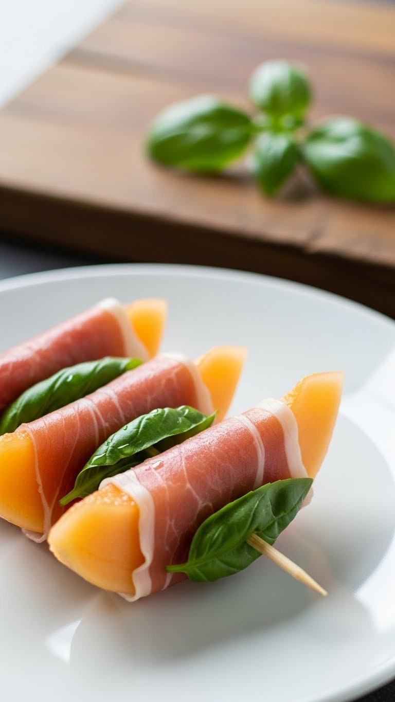- Chill 10–15 minutes before serving. Visual cue: prosciutto should cling to melon and basil.