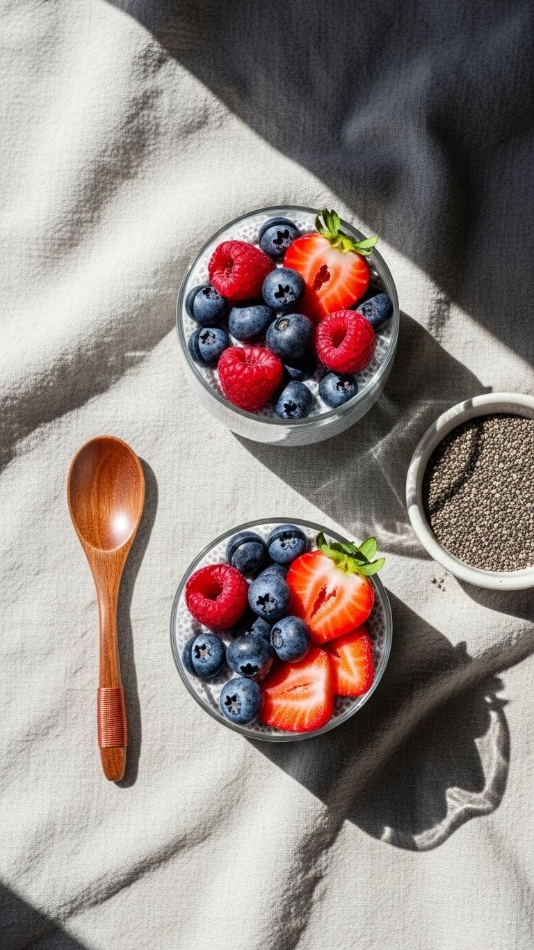 Present jars on a wooden tray with small spoons. Garnish with mint and a thin lemon slice. Pair with coffee or herbal tea. Parfaits can be made one day ahead and kept chilled. For a nut-free option, skip almonds and use pumpkin seeds.